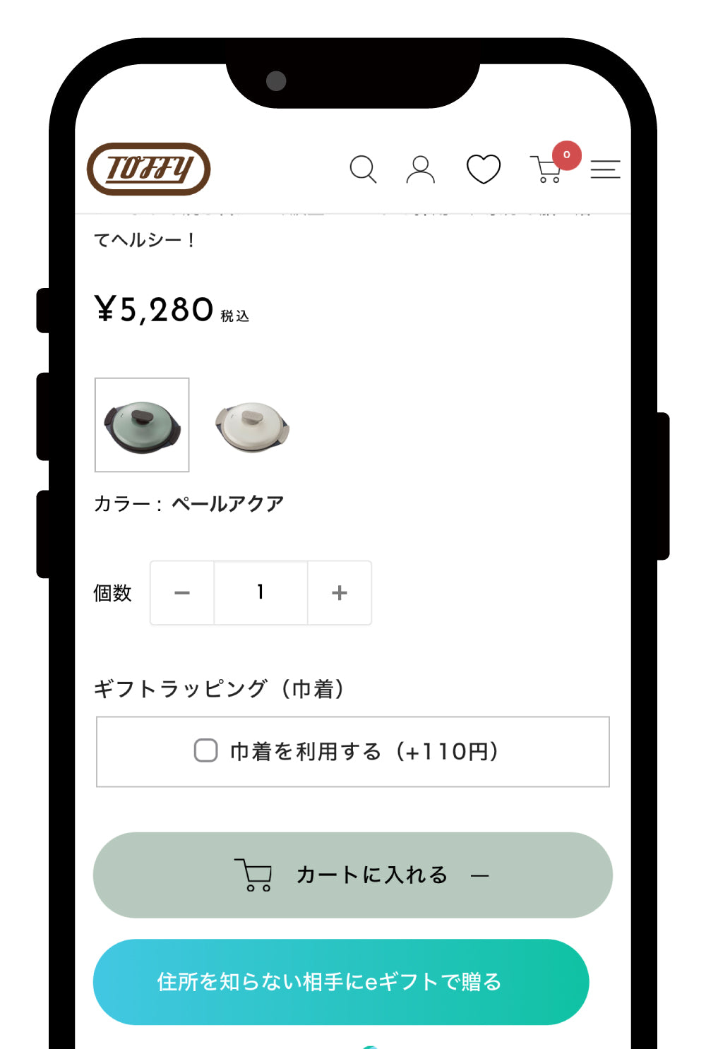 商品をカートに入れ、カート画面から「eギフトで贈る」を選択してください。