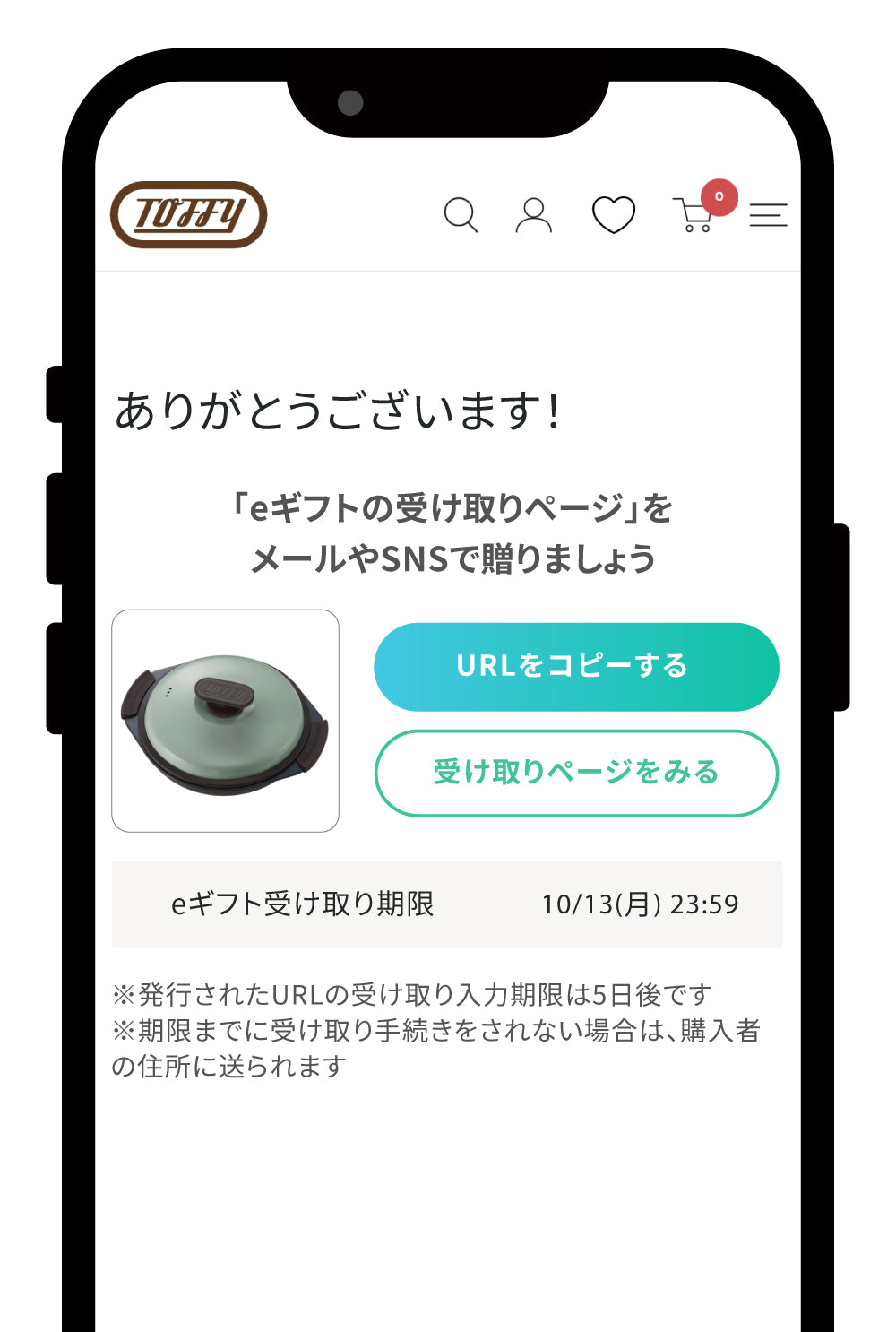 期限内に贈り先様へURLの送付・贈り先の住所の入力が必要です。
