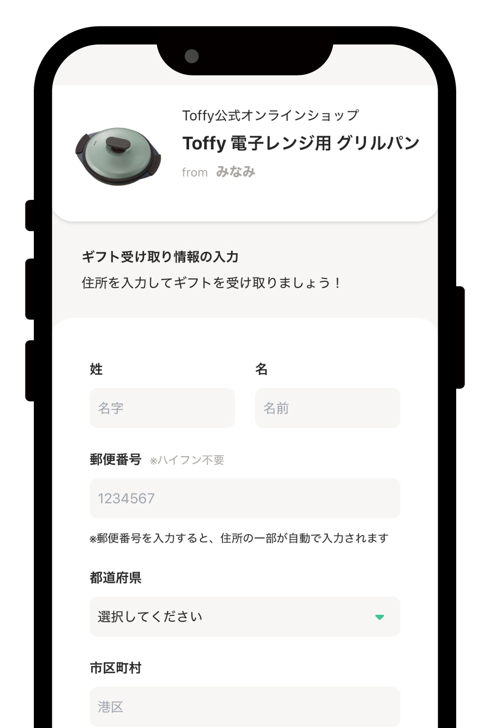 受取用ページでお届け先情報を入力するだけで贈り主の方が注文した商品が届きます。