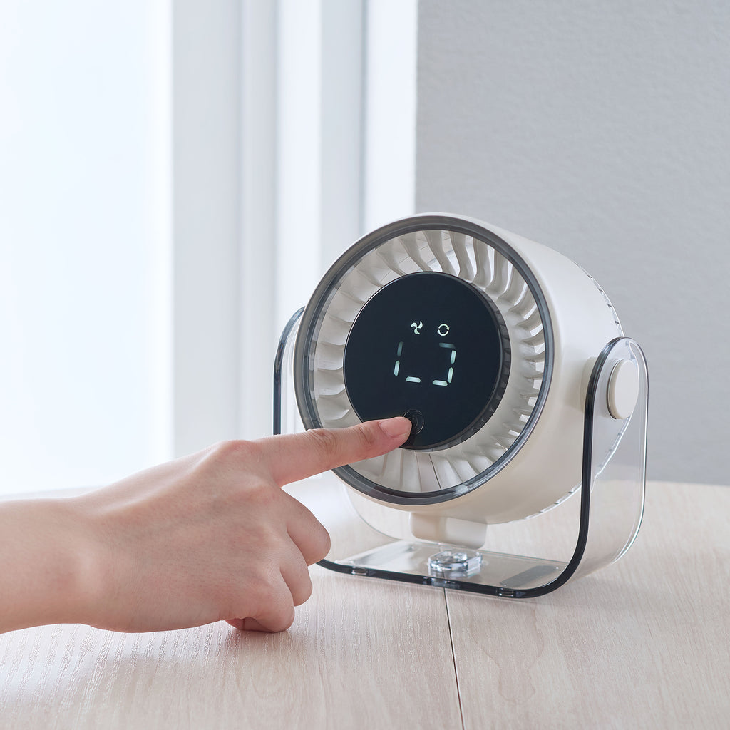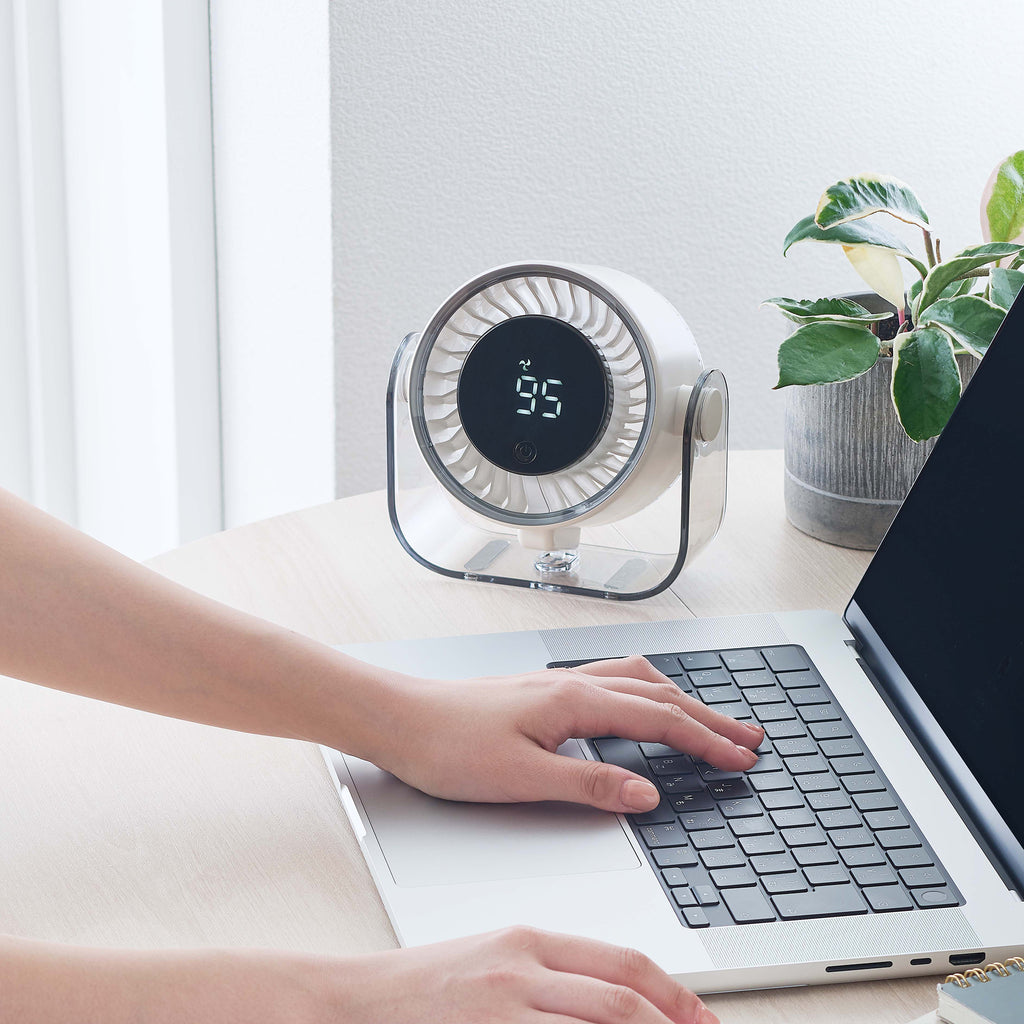大きな吹出口で大風量ながら、卓上に置きやすいサイズ。