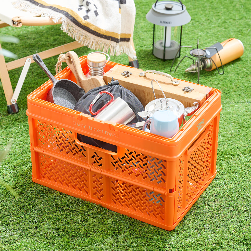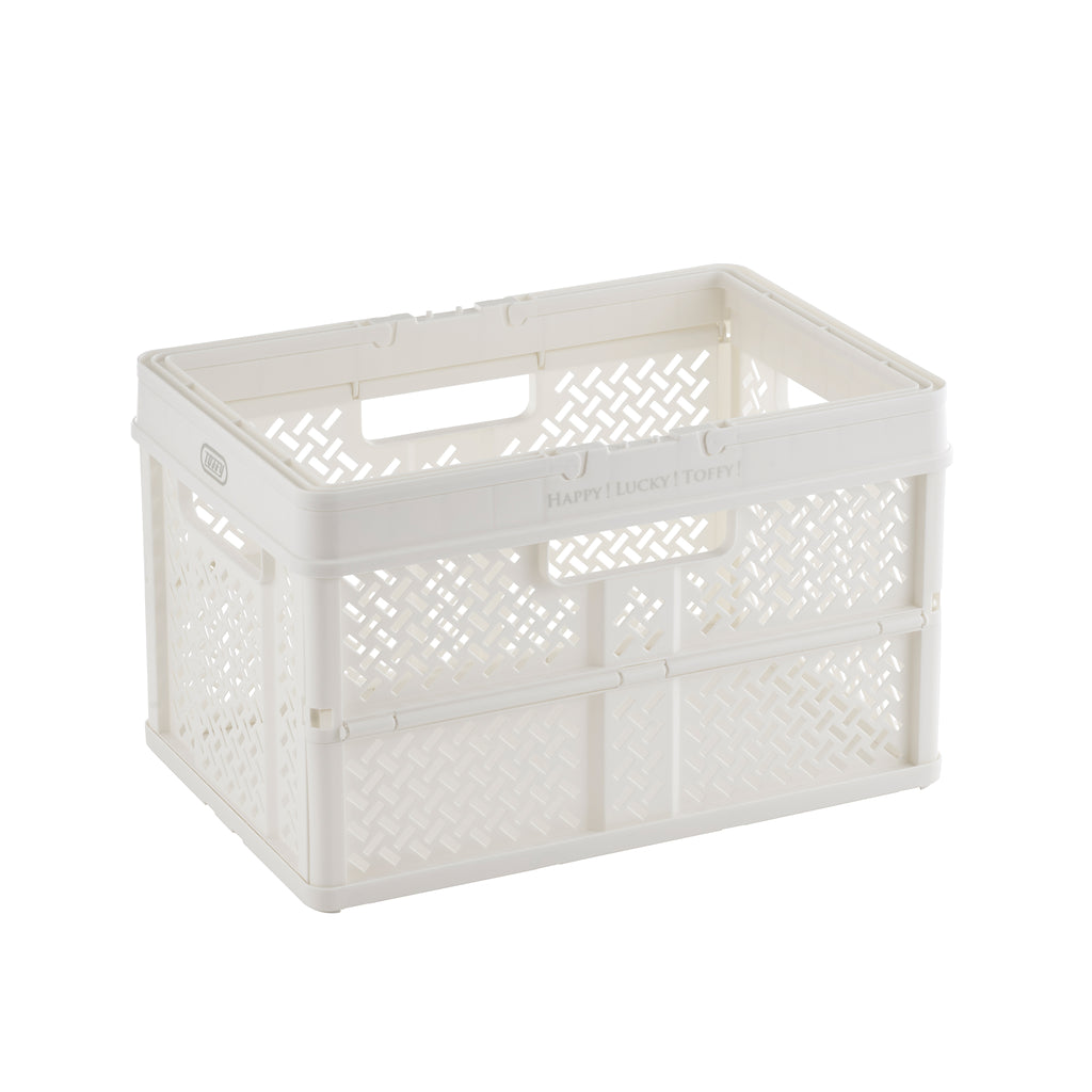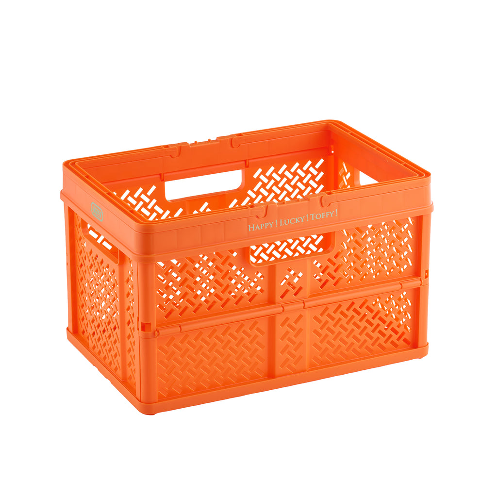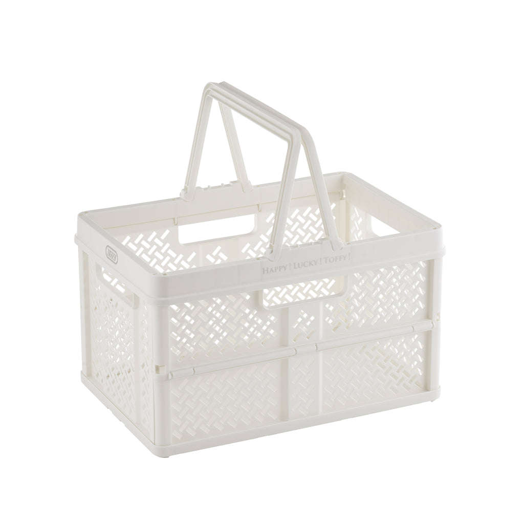 おしゃれでPOP なデザインのハンドル付きバスケット。 使わないときはコンパクトに折りたためるので、収納時もスマート。 おもちゃや衣類、食材のストックやアウトドアの荷物入れ、ショッピングなど幅広く大活躍!!