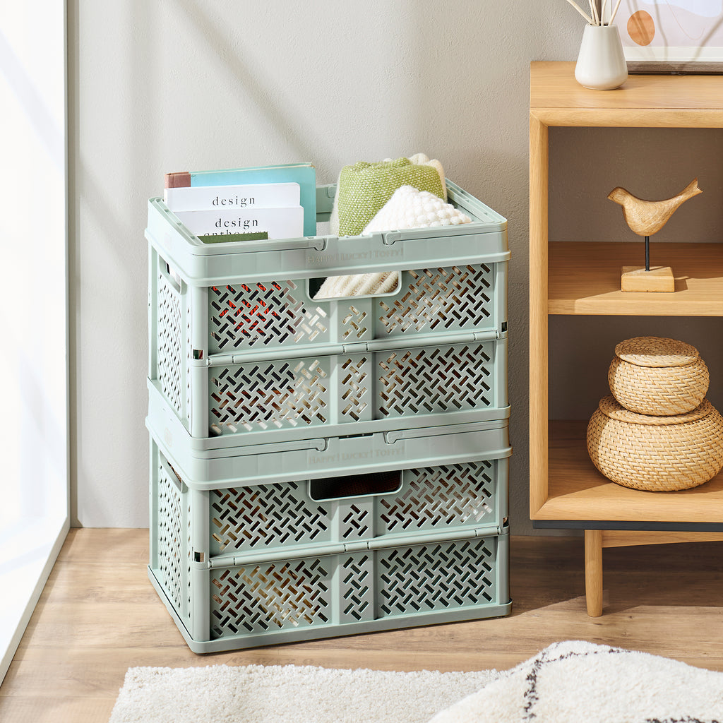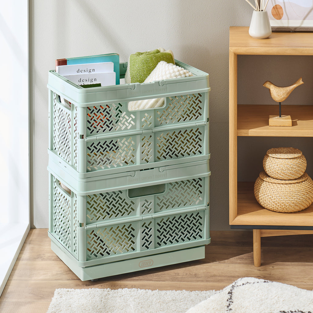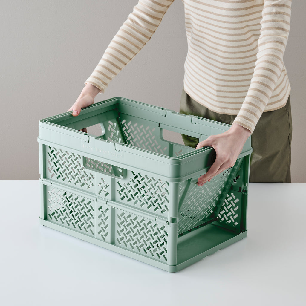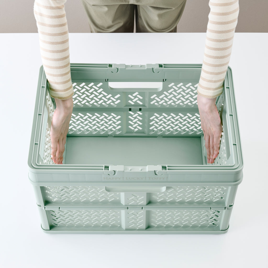 おしゃれでPOP なデザインのハンドル付きバスケット。 使わないときはコンパクトに折りたためるので、収納時もスマート。 おもちゃや衣類、食材のストックやアウトドアの荷物入れ、ショッピングなど幅広く大活躍!!