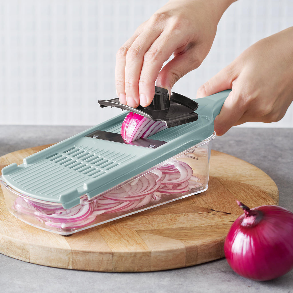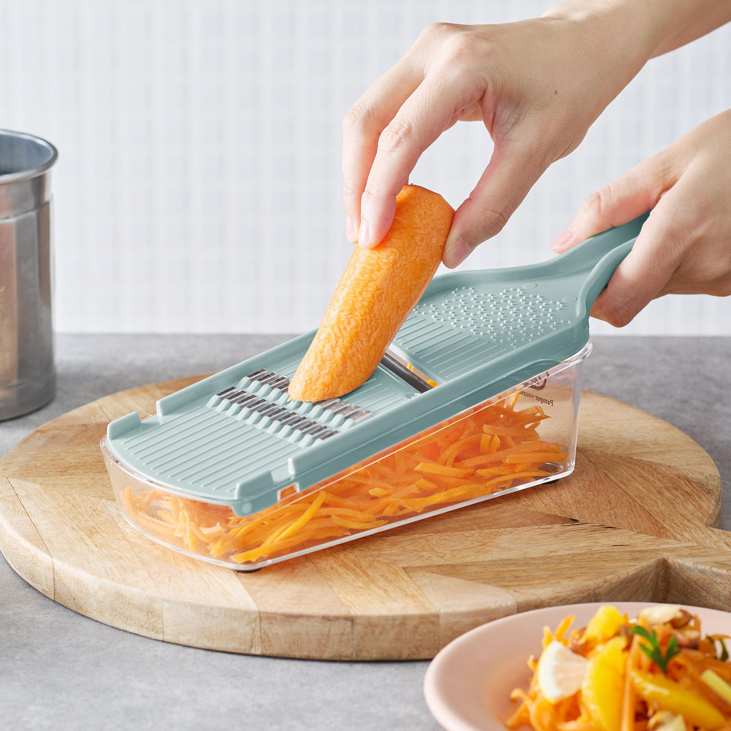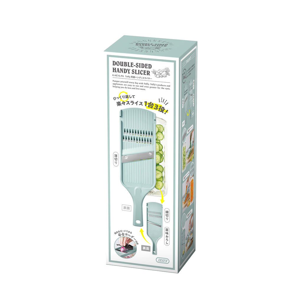 表面で薄切り、裏面で細切り&薬味おろしができる1台3役のハンディスライサー!